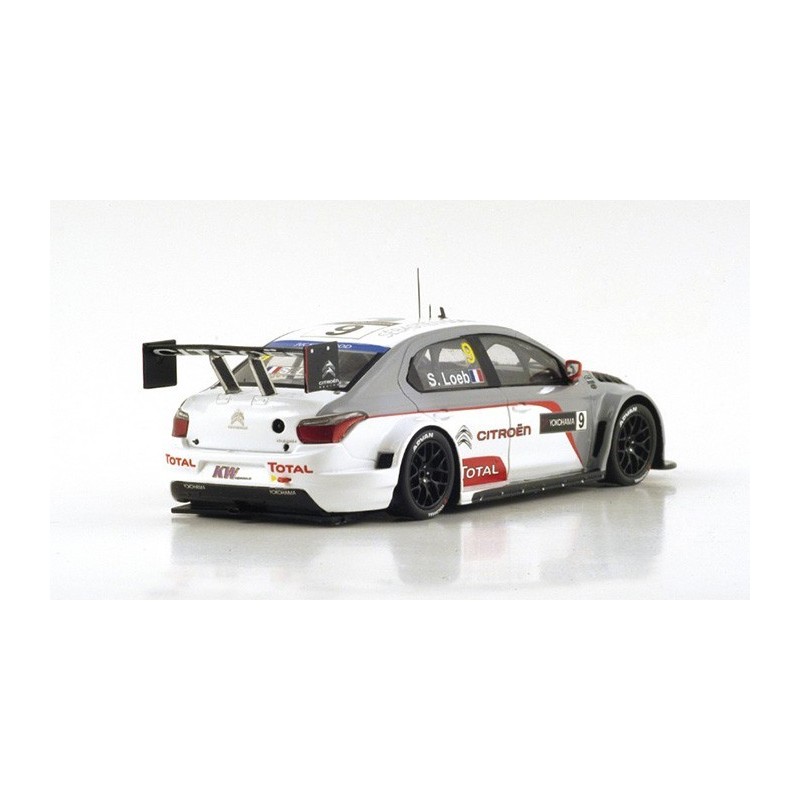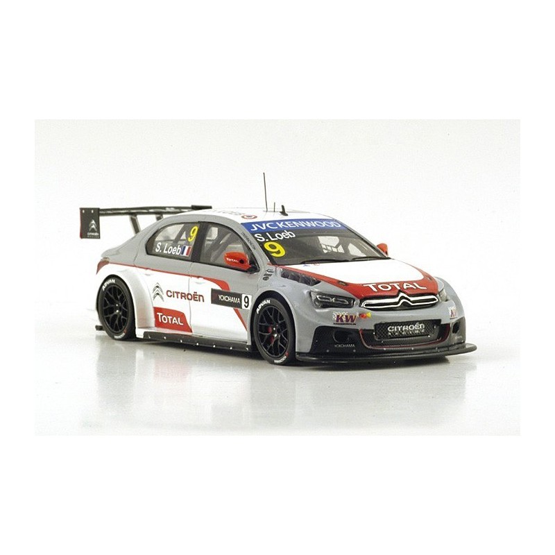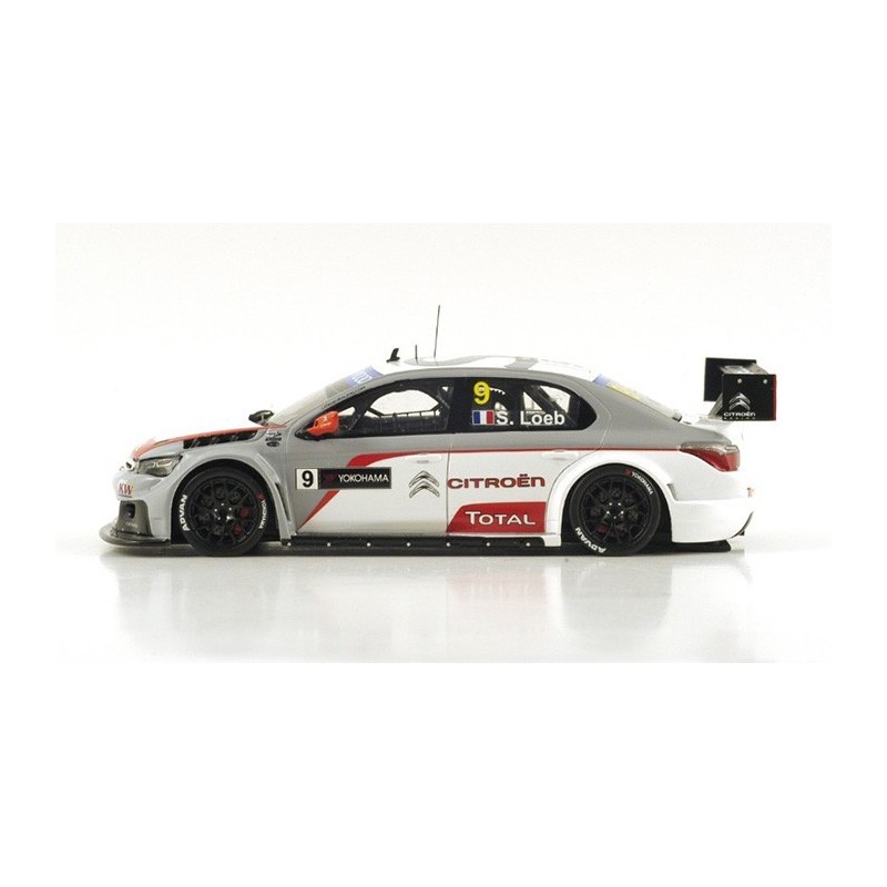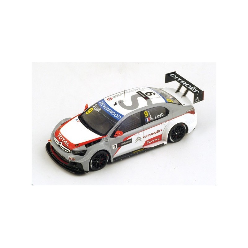 Miniature diecast racing 1/43 de la Citroen C-Elysee n 9 pilotée par Sébastien Loeb en championnat du monde des voitures de tourisme WTCC en 2014. Modèle réduit de voiture Spark S2461. Maquette auto de collection.