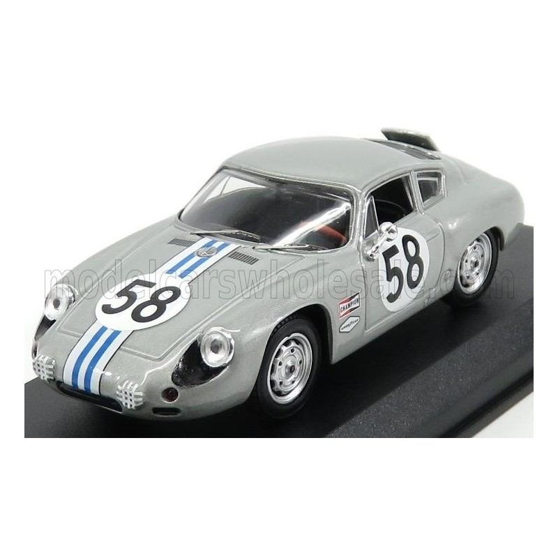 Miniature diecast car racing 1/43 de la Porsche 356B Carrera Abarth GTL n 58 pilotée par Cassel - Sesslar aux 12 Heures de Sebring 1963. Modèle réduit de voiture Best Model 9720. Catalogue Miniatures automobile Best Model 2021. Maquette auto de collection.