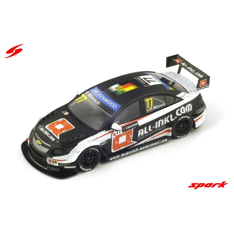 Miniature diecast car racing 1/43 de la Chevrolet RML Cruze TC1 n 77 pilotée par René Munnich en WTCC 2014. Modèle réduit de voiture Spark S2464. Catalogue Miniatures automobile Spark 2026. Maquette auto de collection.
