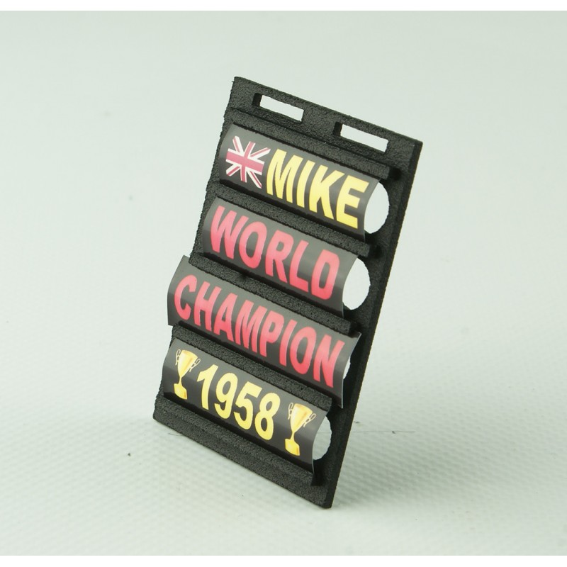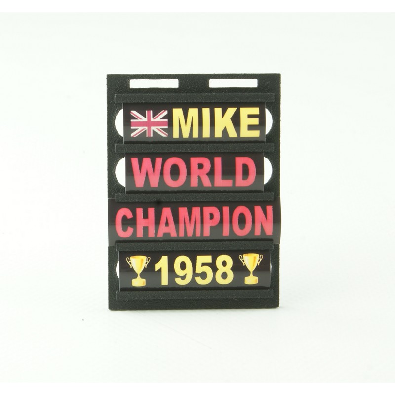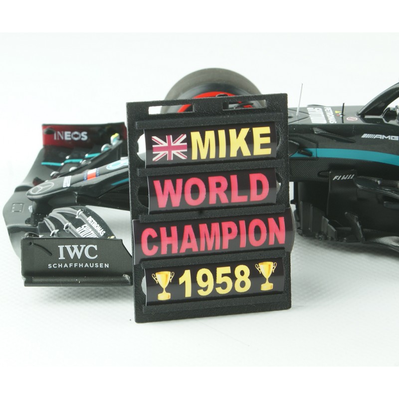 Pitboard 1/18 de Formule 1. Permettant de mettre en valeur vos modèles réduits F1 et décorer votre vitrine. Motorsport Modelisme PBMIH01