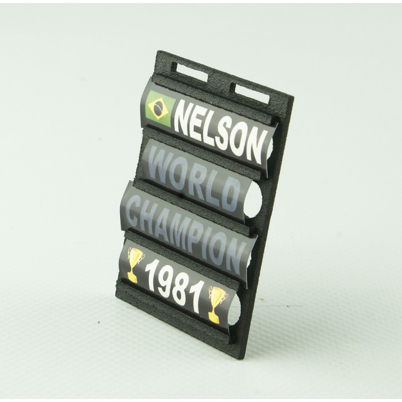Pitboard 1/18 de Formule 1. Permettant de mettre en valeur vos modèles réduits F1 et décorer votre vitrine. Motorsport Modelisme PBNP01