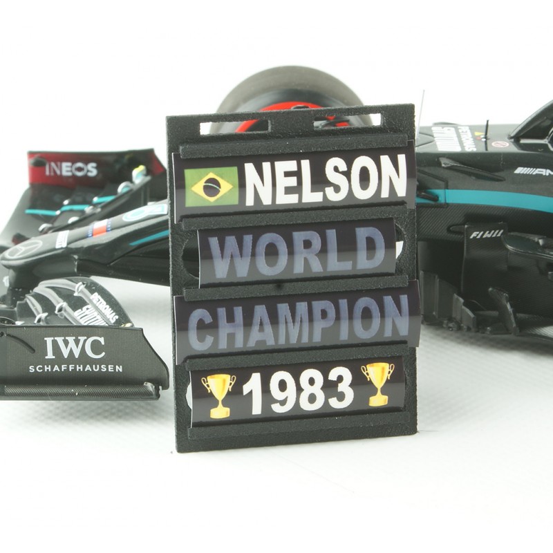 Pitboard 1/18 de Formule 1. Permettant de mettre en valeur vos modèles réduits F1 et décorer votre vitrine. Motorsport Modelisme PBNP02