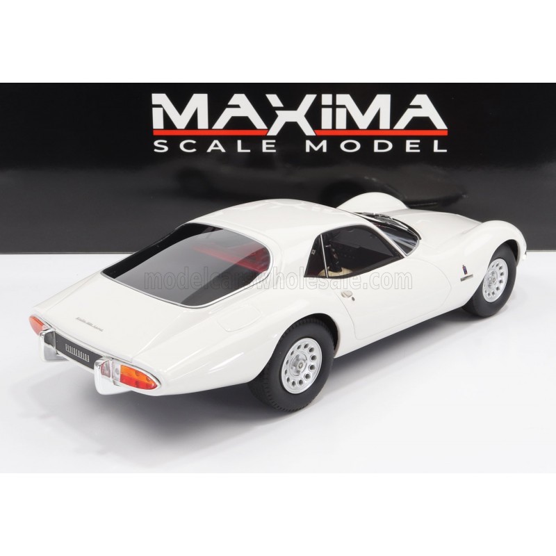 Miniature diecast car 1/18 de l'Alfa Romeo Giulia TZ2 Coupe Pinifarina année 1965 couleur White. Modèle réduit de voiture Maxima MAX001001. Catalogue Miniatures automobile Maxima 2022. Maquette auto de collection.