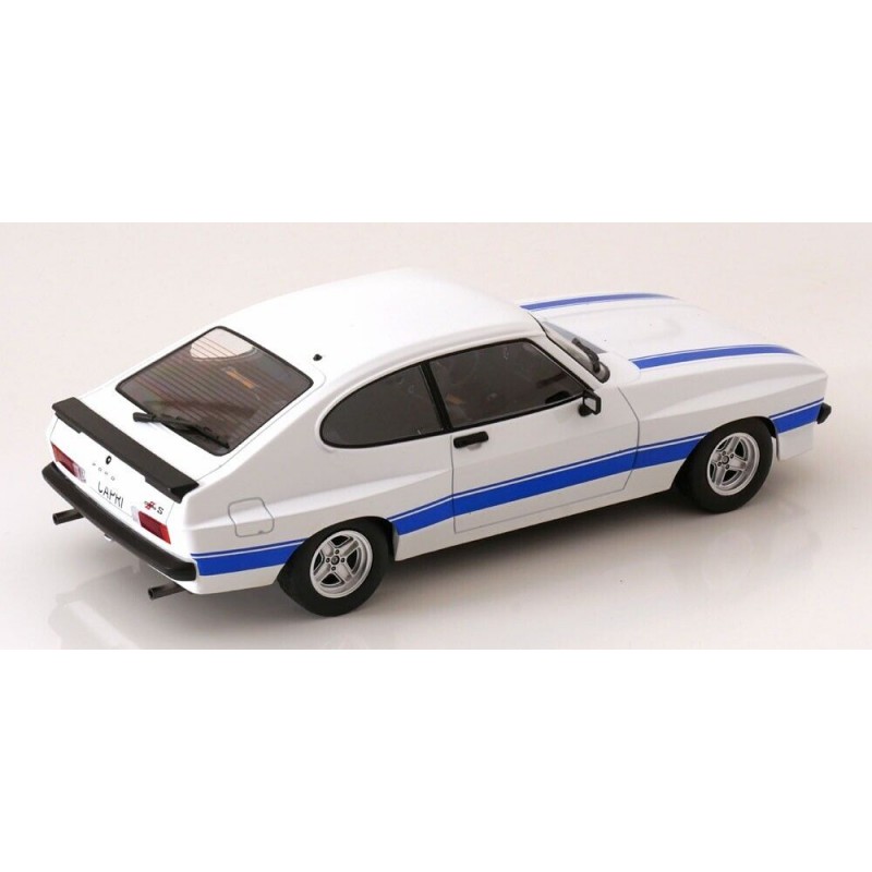 Miniature diecast car 1/18 de la Ford Capri MK II X-Pack année 1975 couleur White. Modèle réduit de voiture MCG MCG18347. Catalogue Miniatures automobile MCG 2022. Maquette auto de collection.