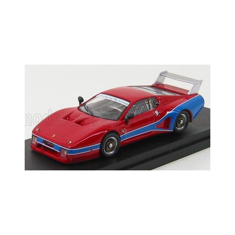 Miniature diecast car 1/43 de la Ferrari 512 BB Silouhette test version année 1978 couleur Red and Blue. Modèle réduit de voiture Best Model 9275. Catalogue Miniatures automobile Best Model 2021. Maquette auto de collection.