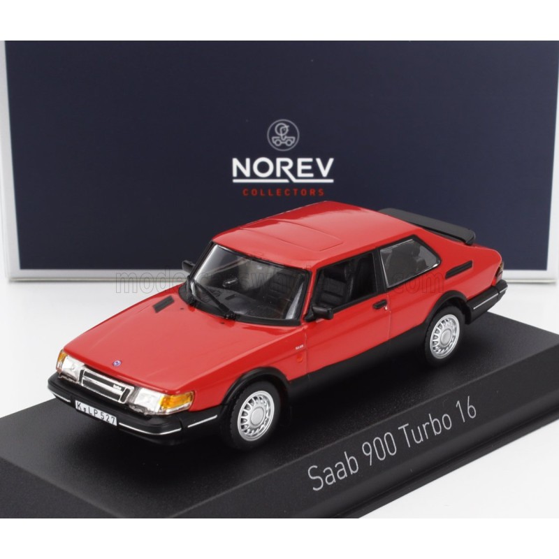 Miniature diecast car 1/43 de la Saab 900 Turbo année 1992 couleur Red. Modèle réduit de voiture Norev 810035. Catalogue Miniatures automobile Norev 2023. Maquette auto de collection.