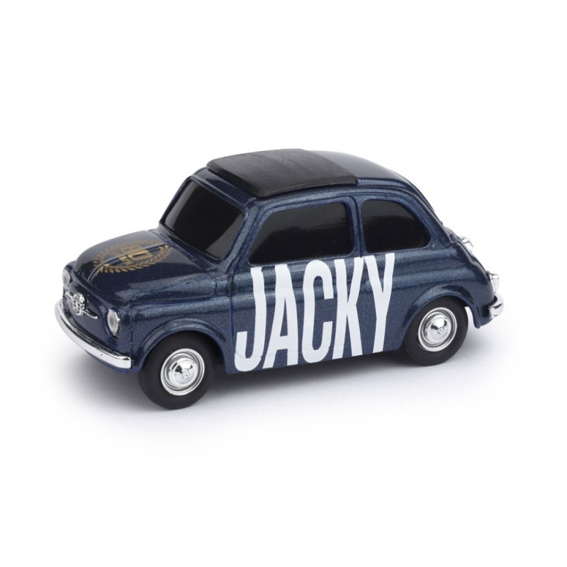 Miniature diecast car 1/43 de la Fiat 500 Brums 80 Years Jacky Ickx 1945 2025 couleur Blue. Modèle réduit de voiture Brumm BR070. Catalogue Miniatures automobile Brumm 2025. Maquette auto de collection.