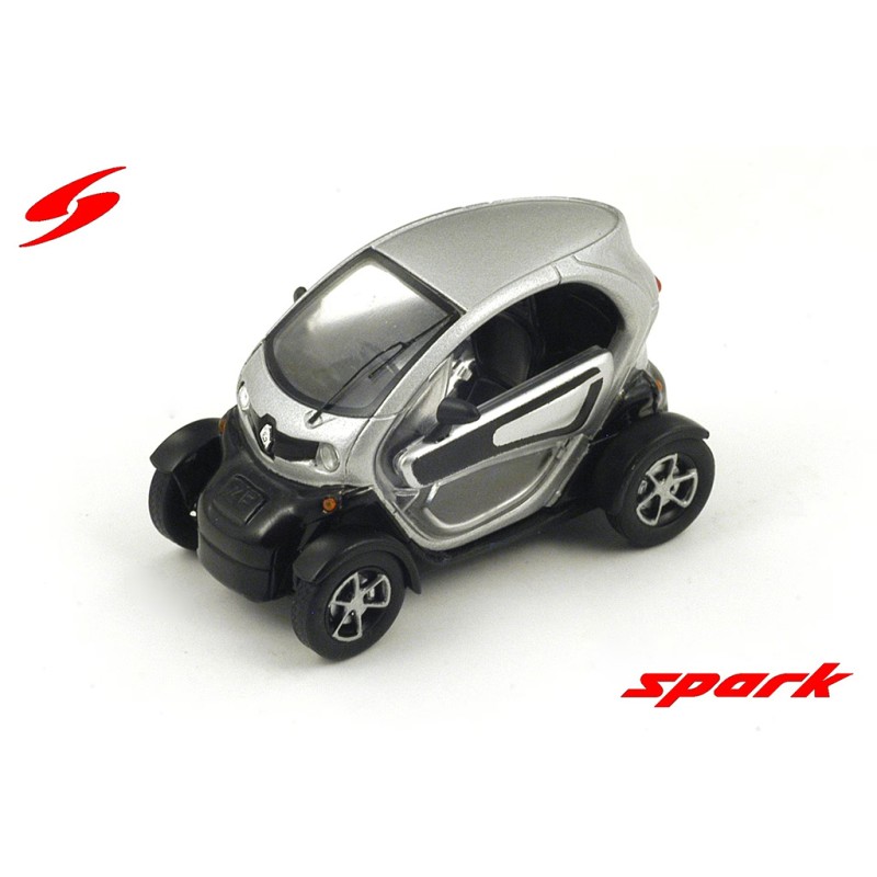 Miniature diecast car 1/43 de la Renault Twizy couleur Silver. Modèle réduit de voiture Spark S4500. Catalogue Miniatures automobile Spark 2026. Maquette auto de collection.