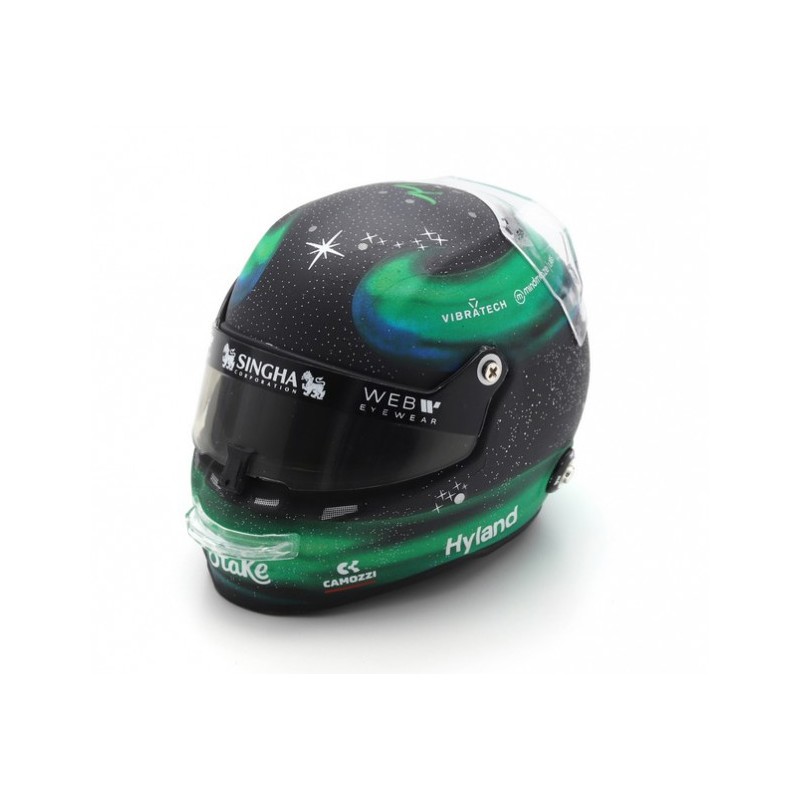Casque Helmet 1/5 de Valtteri Bottas lors de la saison de Formule 1 2024. Sauber. Miniature helmet Spark 5HF147. Maquette F1 de collection.