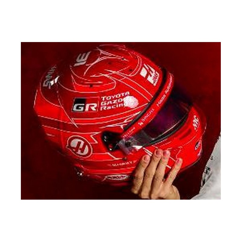 Casque Helmet 1/5 de Esteban Ocon lors de la saison de Formule 1 2026. Haas. Miniature helmet Spark 5HF240. Maquette F1 de collection.