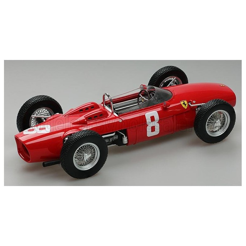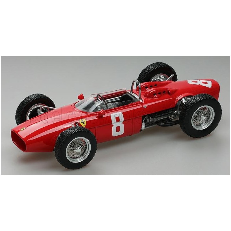 Miniature diecast F1 1/18 de la Ferrari 156 n 8 Ferrari pilotée par Willy Mairesse au Grand Prix d'Italie Monza 1962 de Formule 1. Modèle réduit de voiture Tecnomodel TM18-308C. Catalogue Miniatures automobile Tecnomodel 2023. Maquette auto de collection.