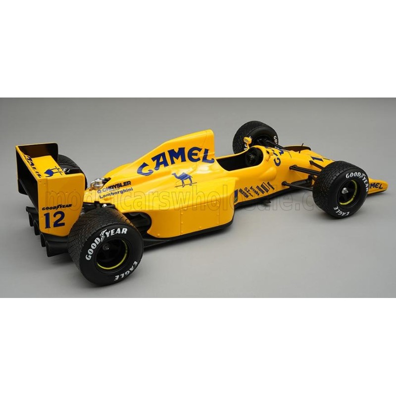 Miniature diecast F1 1/18 de la Lotus 102 n 12 Lotus pilotée par Martin Donnelly aux qualifications du Grand Prix des USA 1990 de Formule 1. Modèle réduit de voiture Tecnomodel TM18-351E. Catalogue Miniatures automobile Tecnomodel 2024. Maquette auto de collection.