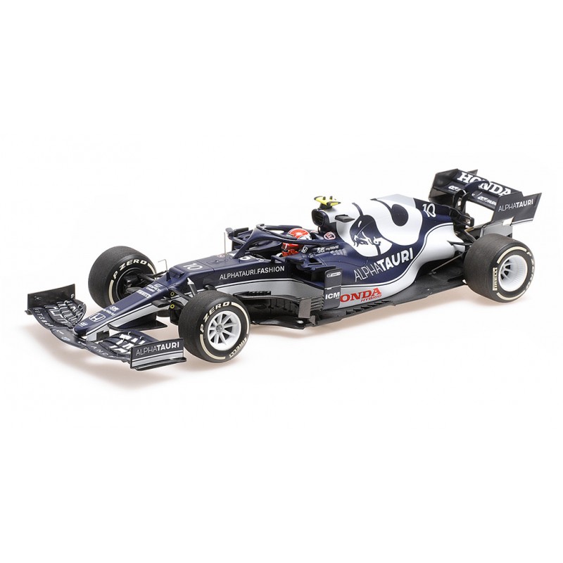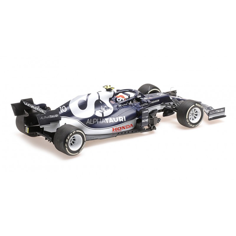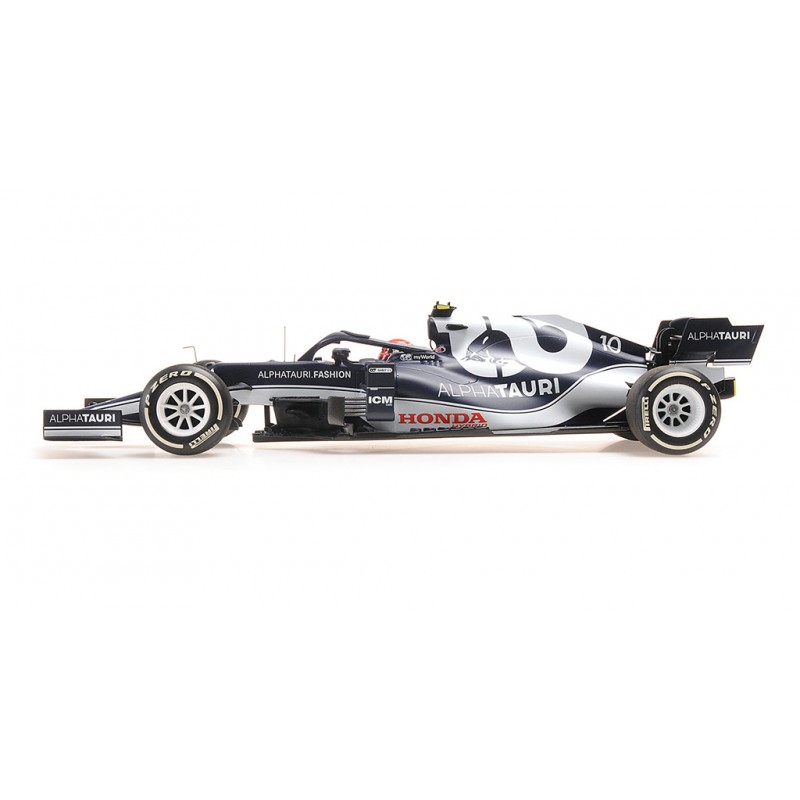 Miniature diecast F1 1/18 de l'Alpha Tauri Honda AT02 n 10 pilotée par Pierre Gasly au Grand Prix d'Azerbaijan 2021 de Formule 1. 3ème. Modèle réduit de voiture Minichamps 117210710. Catalogue Miniatures automobile Minichamps 2021. Maquette auto de collection.