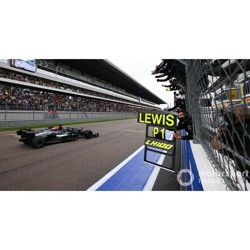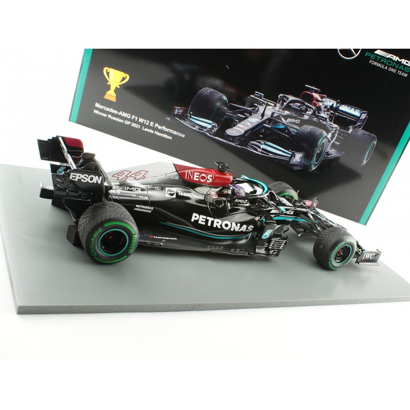 Mercedes AMG F1 W12 E Performance 44 F1 Grand Prix de Russie 100th Victory avec pitboard 2021 Lewis Hamilton Spark 18S604