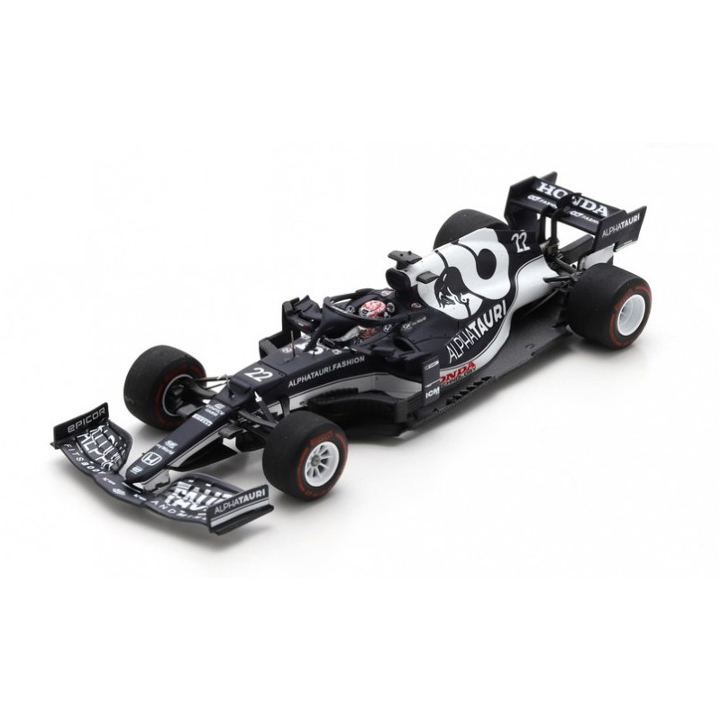 Miniature diecast F1 1/43 de la Alpha Tauri Honda AT02 n 22 pilotée par Yyuki Tsunoda au Grand Prix d'Abu Dhabi 2021 de Formule 1. Modèle réduit de voiture Spark S7853. Catalogue Miniatures automobile Spark 2022. Maquette auto de collection.