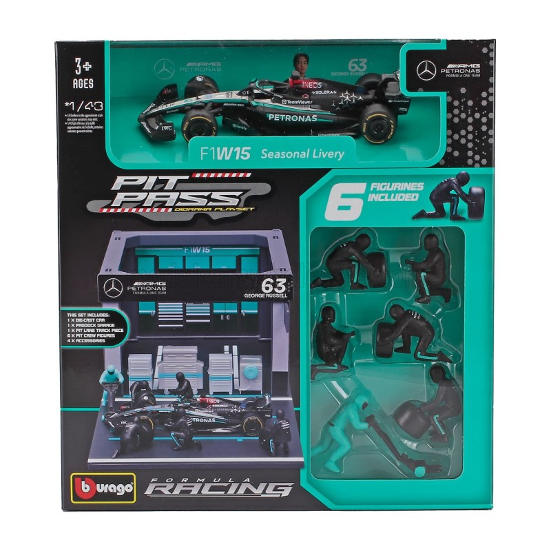 Mercedes F1 W15 Diorama Garage Pit-Stop 63 George Russell F1 2024 Bburago 18-38452-R