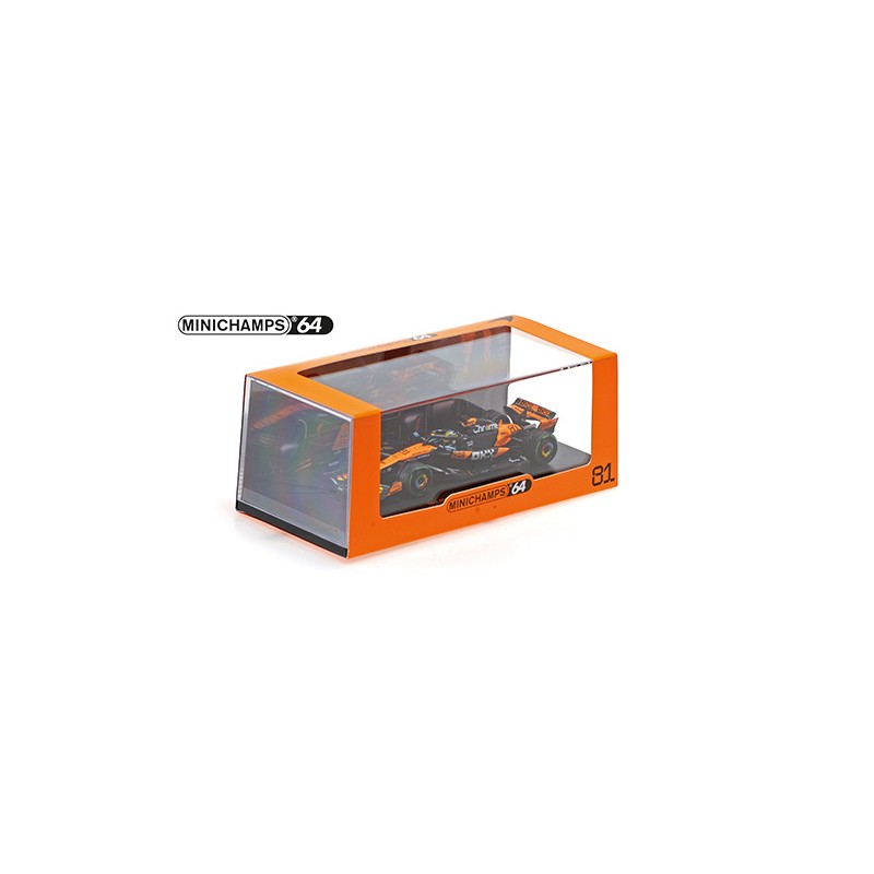 Miniature diecast F1 1/64 de la McLaren Mercedes MCL39 n 81 pilotée par Oscar Piastri au Grand Prix d'Australie 2025 de Formule 1. Modèle réduit de voiture Minichamps 530256481. Catalogue Miniatures automobile Minichamps 2025. Maquette auto de collection.