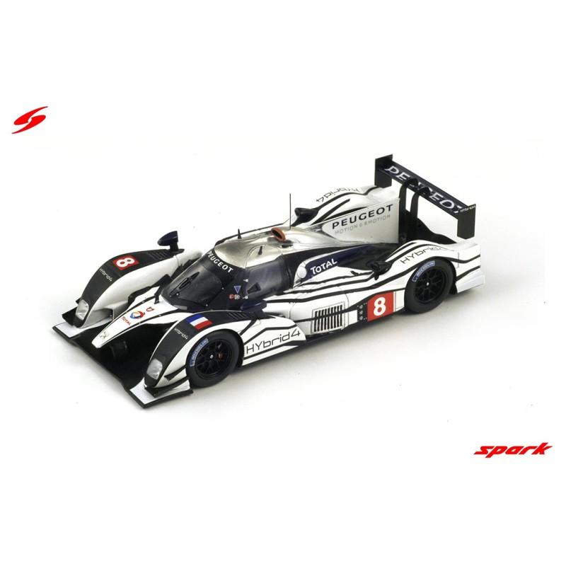 Miniature diecast Le Mans 1/43 de la Peugeot 908 Hybrid n 8 Peugeot Sport Total 2011. Modèle réduit de voiture Spark S2591. Catalogue Miniatures automobile 24h Spark 2026. Maquette auto de collection.