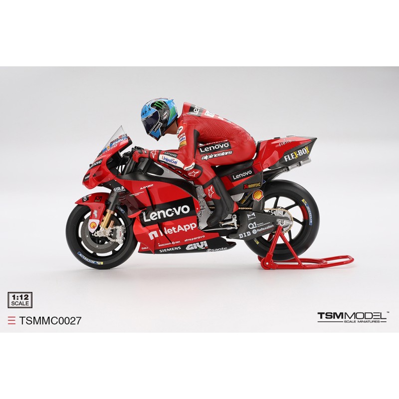 Miniature diecast bike 1/12 de la Ducati Desmosedici GP22 with driver n 63 pilotée par Francesco Bagnaia au Grand Prix d'Italie Moto GP en 2022. Modèle réduit de moto Truescale TSMMC0027. Catalogue Miniatures motos Truescale 2025. Maquette motorcycle de collection.