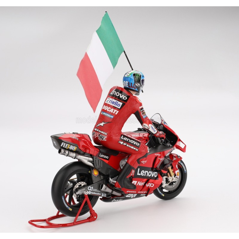 Ducati Desmosedici GP22 with driver and flag 63 Francesco Bagnaia Moto GP Winner Italie 2022 Truescale TSMMC0026