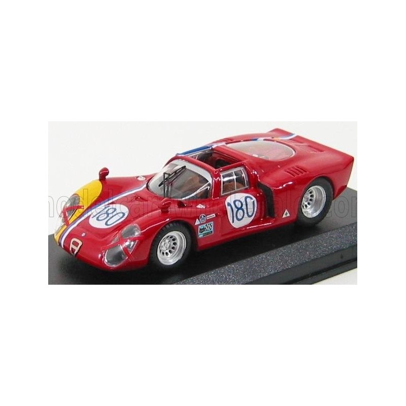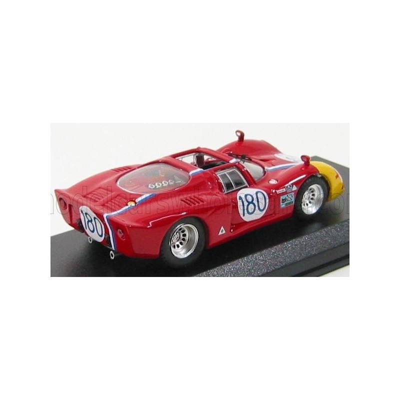 Miniature diecast rally 1/43 de l'Alfa Romeo 33.2 n 180 pilotée par Gosselin - Trosch à la Targa Florio 1968. Modèle réduit de voiture de rallye Best Model 9390. Catalogue Miniatures automobile Best Model 2021. Maquette auto de collection.