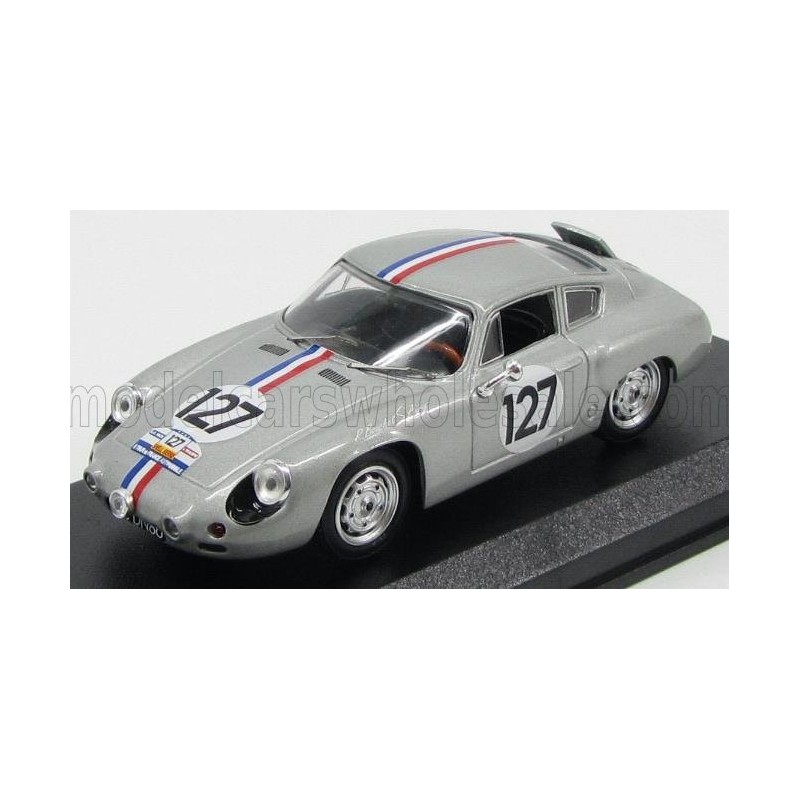 Miniature diecast rally 1/43 de la Porsche Abarth Coupe n 127 pilotée par Bouchet - Aury au Tour de France 1961. Modèle réduit de voiture de rallye Best Model 9580. Catalogue Miniatures automobile Best Model 2021. Maquette auto de collection.