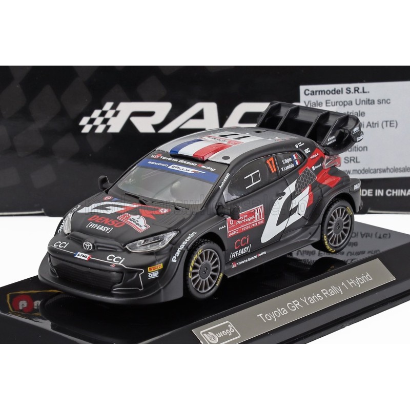 Miniature Ogier diecast rally 1/43 de la Toyota Yaris GR Rally1 n 17 pilotée par Sebastien Ogier - Vincent Landais en WRC 2024. Modèle réduit de voiture de rallye Bburago BU38323. Catalogue Miniatures automobile Bburago 2024. Maquette auto de collection.