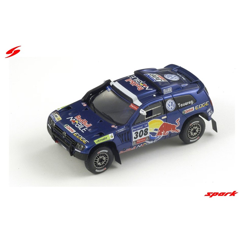 Miniature diecast rally 1/43 de la Volkswagen Touareg 3 n 308 pilotée par G. De Villiers - V.D. Zitzewitz au Dakar 2011. 2nd. Modèle réduit de voiture de rallye Spark S0824. Catalogue Miniatures automobile Spark 2026. Maquette auto de collection.