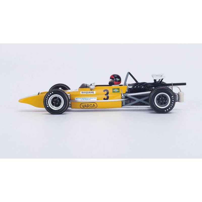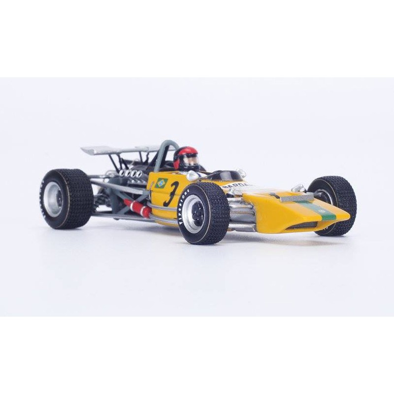 Miniature diecast F1 1/43 de la Lotus 69 n 13 pilotée par Emerson Fittipaldi au Grand Prix F2 d'Albi en 1971. Modèle réduit de voiture Spark S2148. Maquette auto de collection.