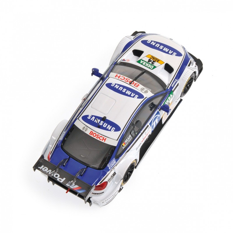 Miniature diecast racing 1/43 de la BMW M4 Team RMG pilotée par Maxime Martin en DTM en 2014. Modèle réduit de voiture Minichamps 410142424. Maquette auto de collection.