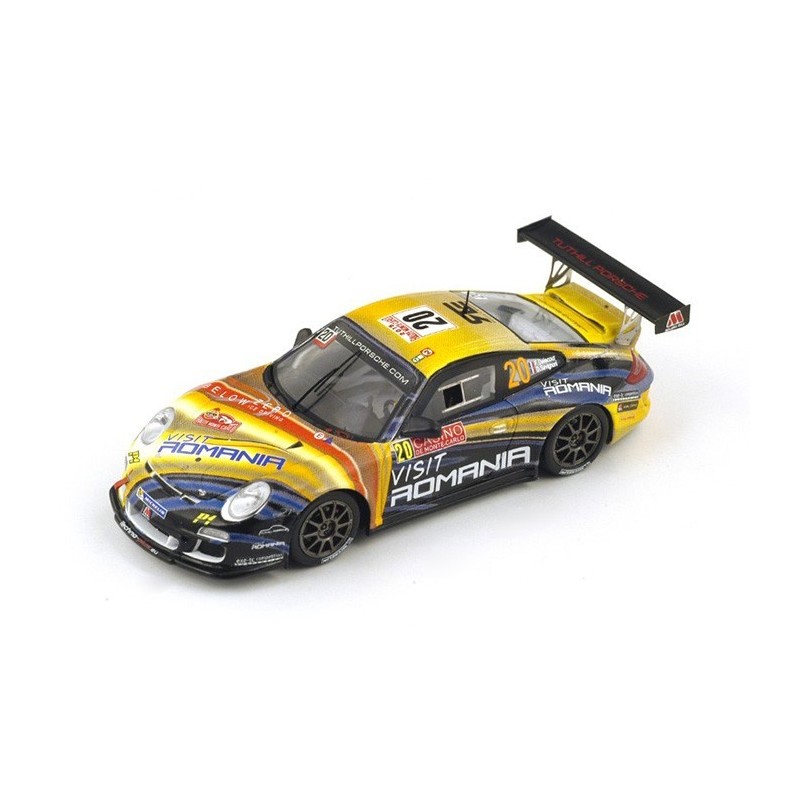 Miniature diecast rallye 1/43 de la Porsche 911 RGT n 20 pilotée par François Delecour au Rallye Monte Carlo 2015. Modèle réduit de voiture Spark S4515. Maquette auto de collection.