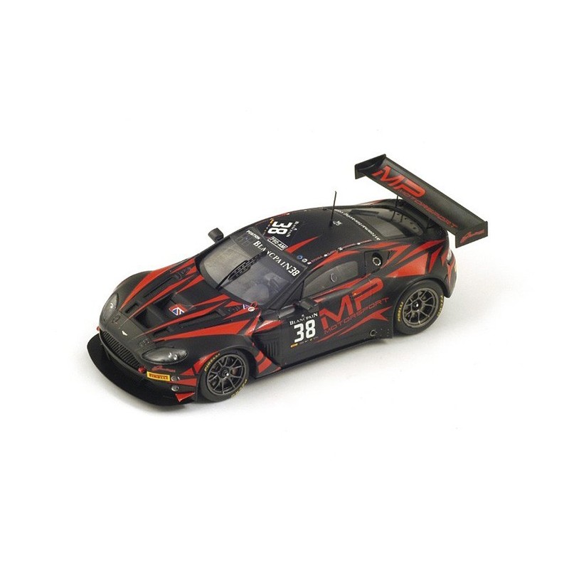 Miniature diecast racing 1/43 de l'Aston Martin Vantage GT3 n 38 Team MS AMR des 24 Heures de Spa Francorchamps 2014. Modèle réduit de voiture Spark SB076. Maquette auto de collection.