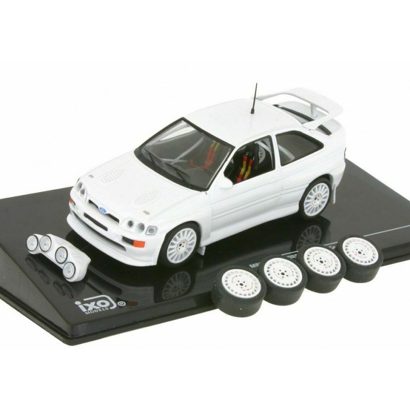 Miniature diecast car 1/43 de la Ford Escort RS Cosworth Plain Body Version, including 4 spare wheels and extra headlight année 1994 couleur White. Modèle réduit de voiture IXO MDCS025. Catalogue Miniatures automobile IXO 2020. Maquette auto de collection.