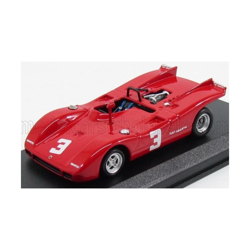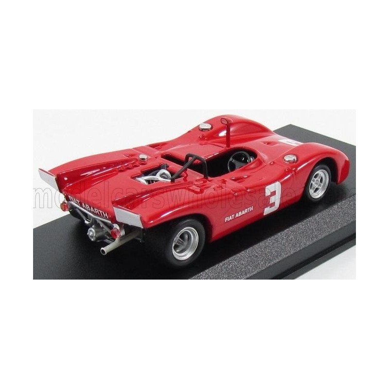 Miniature diecast car racing 1/43 de la Fiat Abarth 2000 Spider n 3 pilotée par Dieter Quester au European 2 Litre Championship au Salzburgring en 1970. 2ème. Modèle réduit de voiture Best Model 9631. Catalogue Miniatures automobile Best Model 2021. Maquette auto de collection.