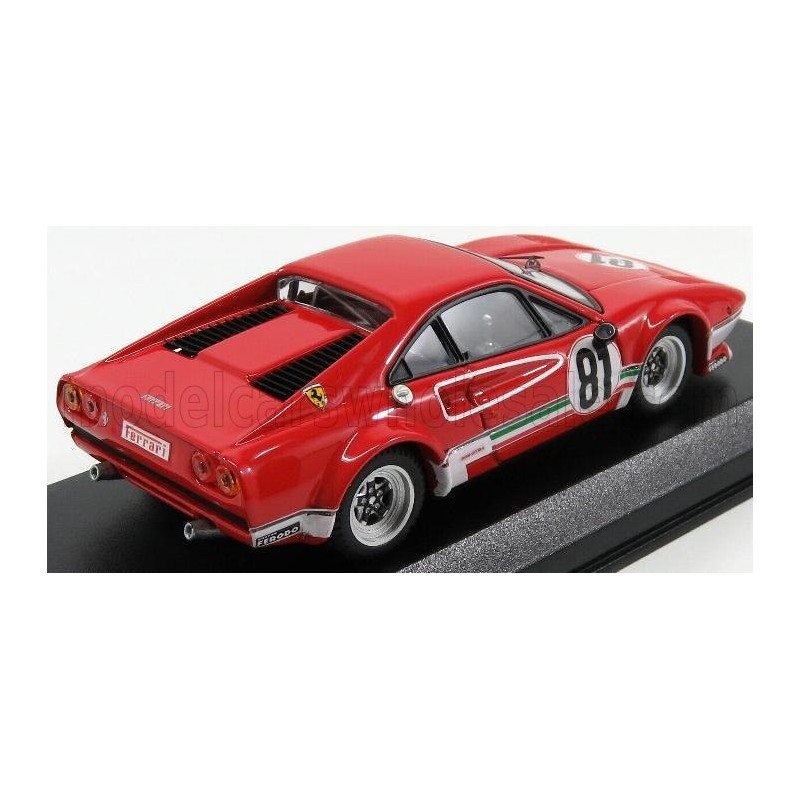 Miniature diecast car racing 1/43 de la Ferrari 308 GTB LM n 81 pilotée par Maurice Dantinne à Zolder en 1976. Modèle réduit de voiture Best Model 9679. Catalogue Miniatures automobile Best Model 2021. Maquette auto de collection.