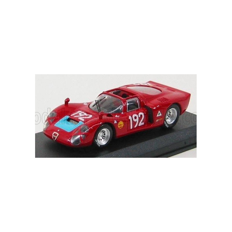 Miniature diecast rally 1/43 de l'Alfa Romeo 33.2 Spider n 192 pilotée par Bianchi - Casoni à la Targa Florio 1968. Modèle réduit de voiture de rallye Best Model 9286. Catalogue Miniatures automobile Best Model 2021. Maquette auto de collection.