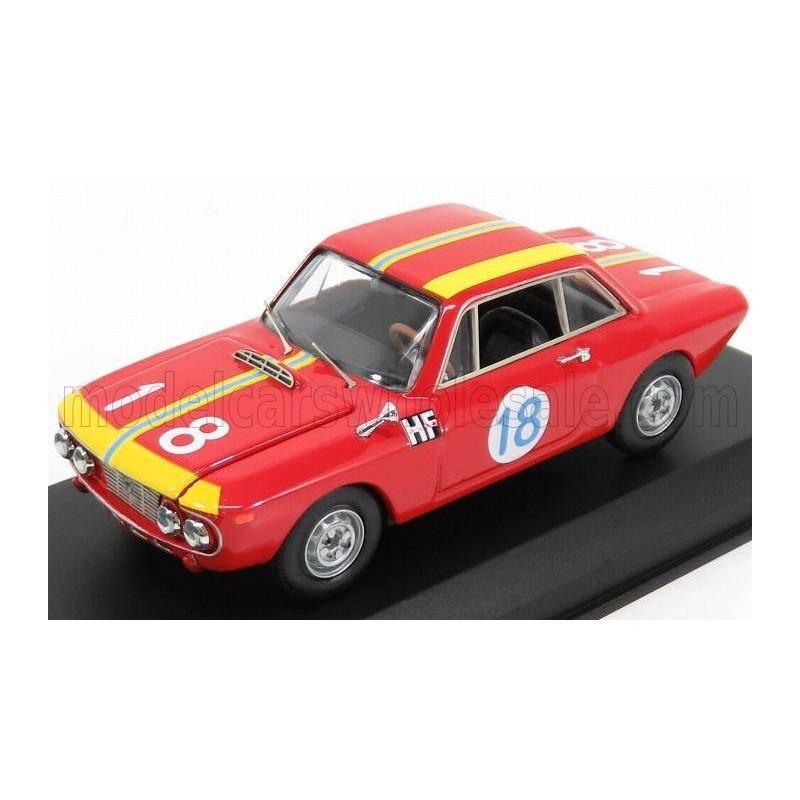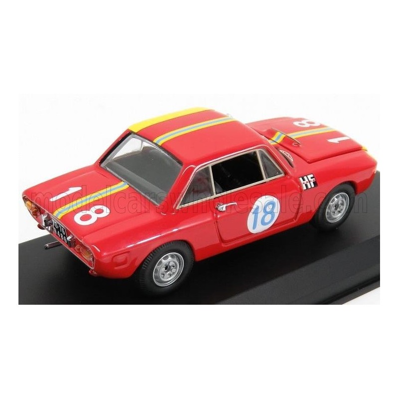 Miniature diecast rally 1/43 de la Lancia Fulvia 1.3 HF n 18 pilotée par Cella - Marzi à la Targa Florio 1966. Winner. Modèle réduit de voiture de rallye Best Model 9660. Catalogue Miniatures automobile Best Model 2021. Maquette auto de collection.