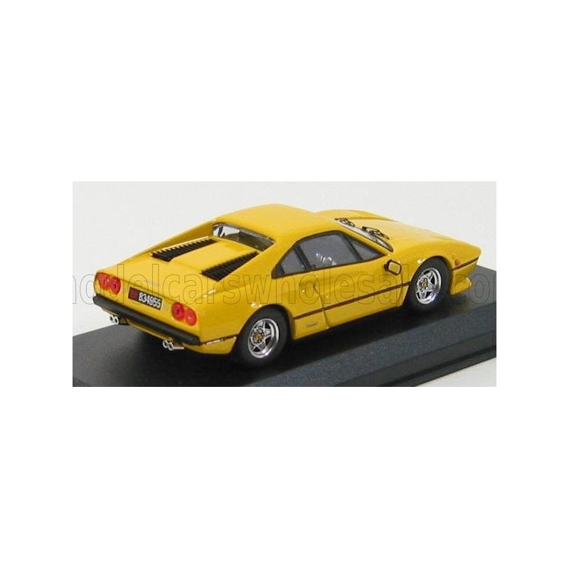 Miniature diecast car 1/43 de la Ferrari 308 GTB année 1975 couleur Yellow. Modèle réduit de voiture Best Model 9203. Catalogue Miniatures automobile Best Model 2021. Maquette auto de collection.