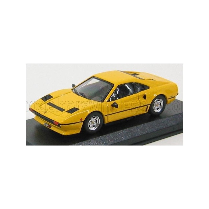 Miniature diecast car 1/43 de la Ferrari 208 GTB Turbo année 1982 couleur Yellow. Modèle réduit de voiture Best Model 9332. Catalogue Miniatures automobile Best Model 2021. Maquette auto de collection.