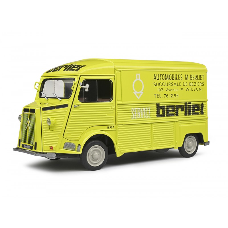 Miniature diecast car 1/18 de la Citroen Type HY Service Berliet année 1969. Modèle réduit de voiture Solido S1804814. Catalogue Miniatures automobile Solido 2021. Maquette auto de collection.