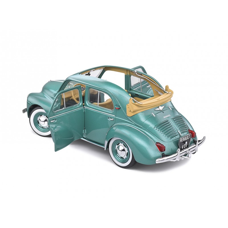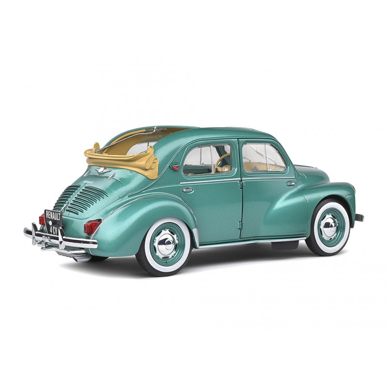 Miniature diecast car 1/18 de la Renault 4CV Convertible année 1951 couleur Osmoy Green. Modèle réduit de voiture Solido S1806601. Catalogue Miniatures automobile Solido 2021. Maquette auto de collection.