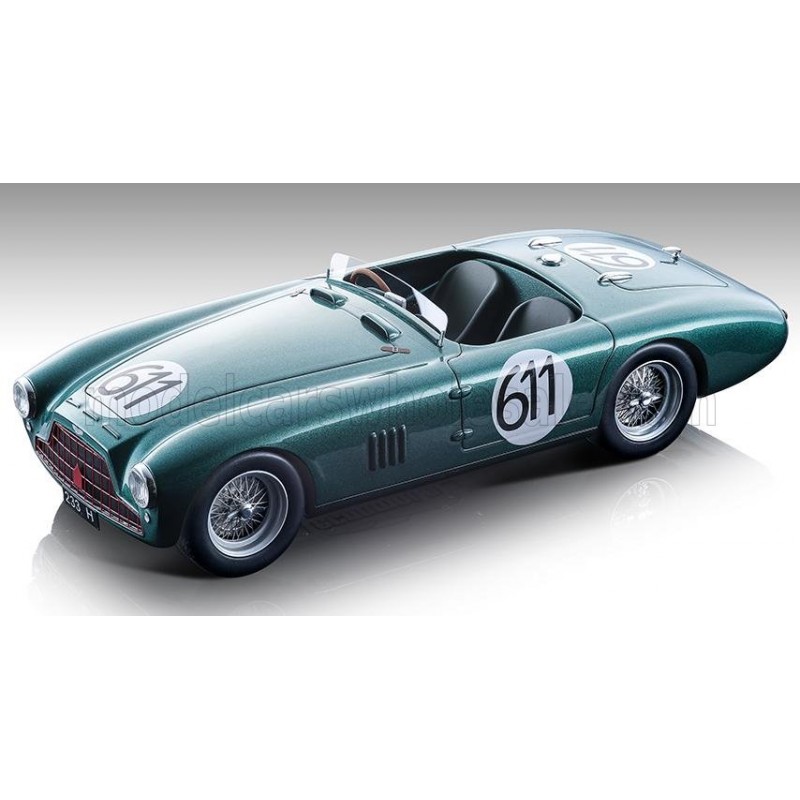 Miniature diecast rally 1/18 de l'Aston Martin DB3S Spider n 611 pilotée par Parnell - Klementaski 5ème au Mille Miglia 1953. Limited Edition 100 pcs. Modèle réduit de voiture de rallye Tecnomodel TM18-203C. Catalogue Miniatures automobile Tecnomodel 2021. Maquette auto de collection.