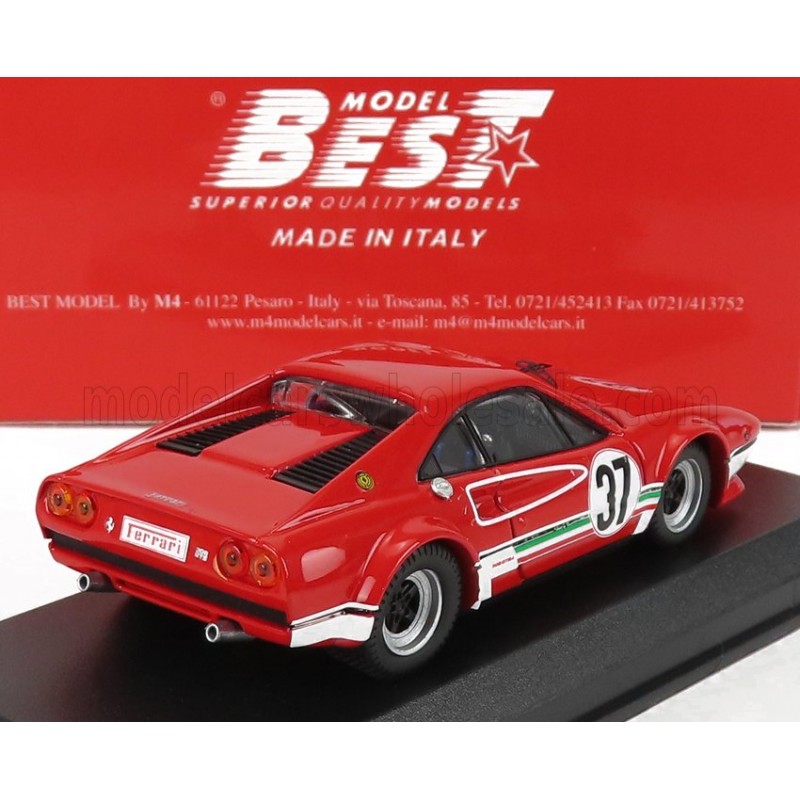 Miniature diecast car racing 1/43 de la Ferrari 308 GTB n 37 pilotée par Maurice Dantinne lors du Havirov International 1978. Modèle réduit de voiture Best Model BEST9825. Catalogue Miniatures automobile Best Model 2022. Maquette auto de collection.