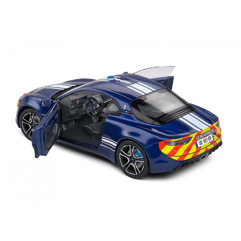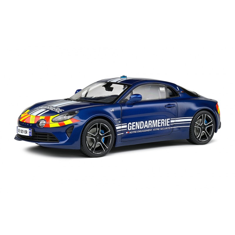 Miniature diecast car 1/18 de la Renault Alpine A110 Gendarmerie année 2022 couleur Blue. Modèle réduit de voiture Solido S1801616. Catalogue Miniatures automobile Solido 2023. Maquette auto de collection.