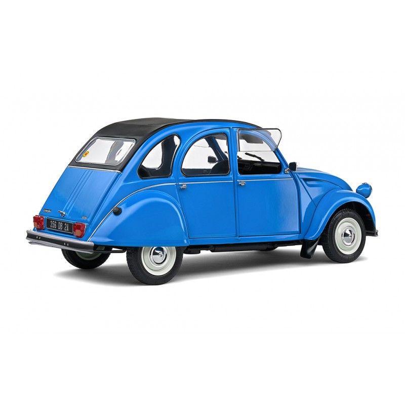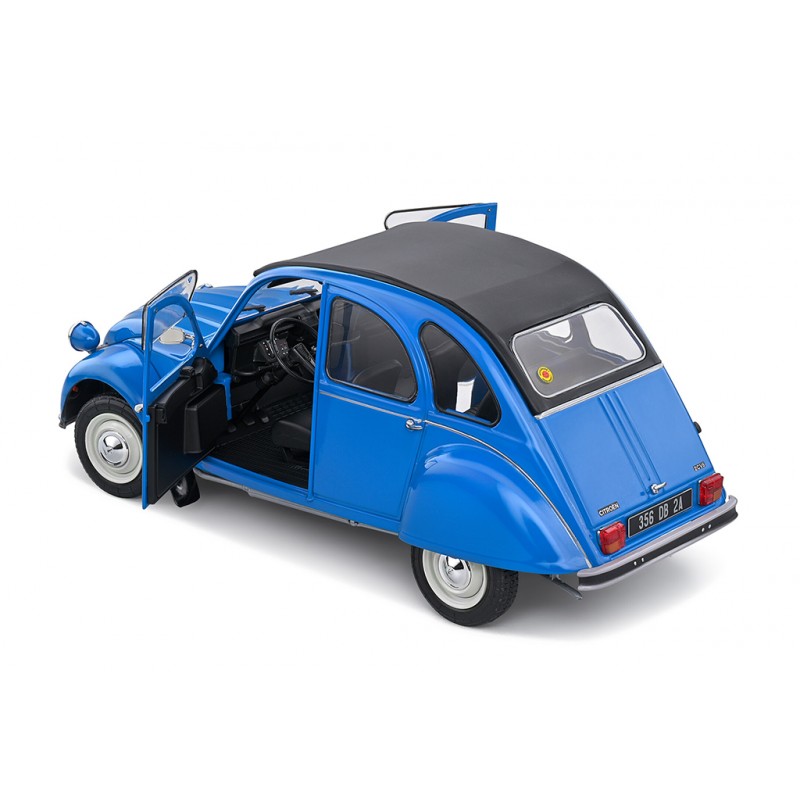 Miniature diecast car 1/18 de la Citroen 2CV6 année 1982 couleur Blue. Modèle réduit de voiture Solido S1805026. Catalogue Miniatures automobile Solido 2023. Maquette auto de collection.