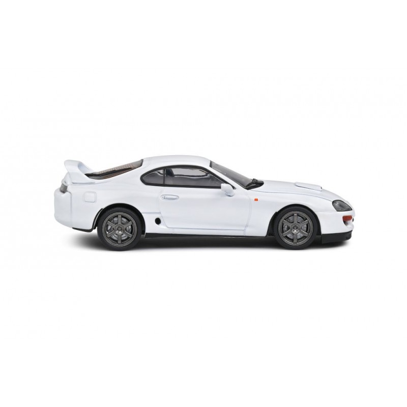 Miniature diecast car 1/43 de la Toyota Supra MKIV Coupe année 2001 couleur White. Modèle réduit de voiture Solido S4314001. Catalogue Miniatures automobile Solido 2023. Maquette auto de collection.