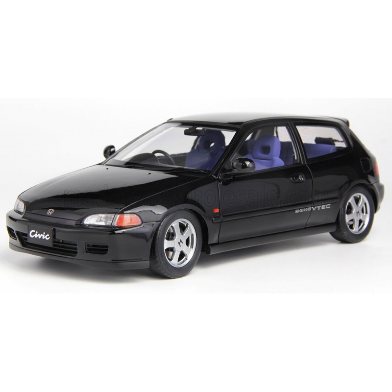 Miniature diecast car 1/18 de la Honda Civic SIR II EG6 VTEC année 1993 couleur Black. Modèle réduit de voiture LCD Model LCD18018-BL. With Openings. Catalogue Miniatures automobile LCD Model 2024. Maquette auto de collection.