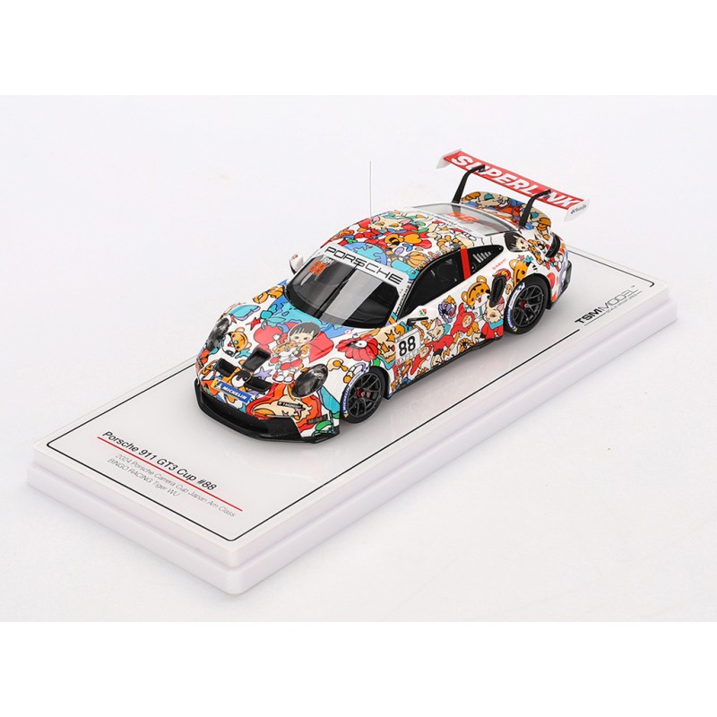 Miniature diecast car racing 1/43 de la Porsche 911 992 GT3 Cup n 88 Bingo Racing pilotée par Tiger Wu en Porsche Carrera Cup Japon 2024. Modèle réduit de voiture Truescale TSM430841. Catalogue Miniatures automobile Truescale 2025. Maquette auto de collection.