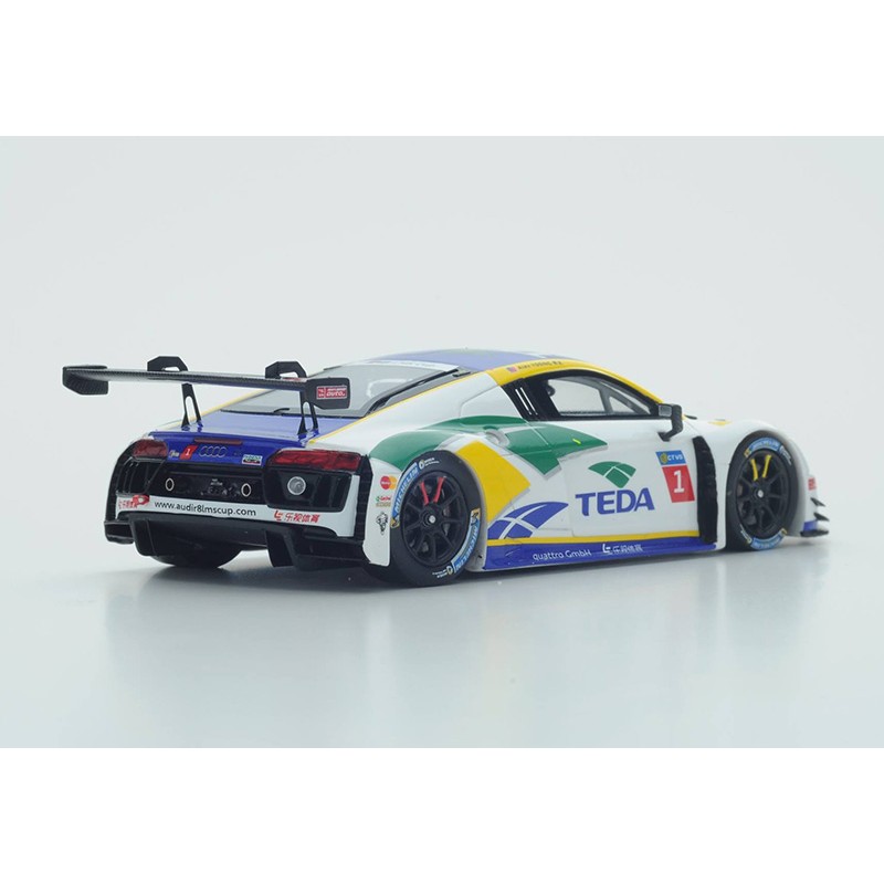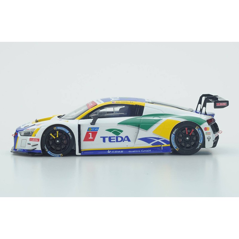 Miniature diecast racing 1/43 de l'Audi R8 LMS Cup n 1 pilotée par Alex Yoong Champion LMS Cup en 2016. Modèle réduit de voiture Spark SA107. Maquette auto de collection.