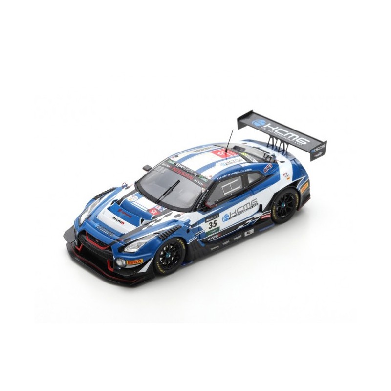 Miniature diecast car racing 1/43 de la Nissan Nismo GTR GT3 n 35 KCMG pilotée par Josh Burdon - Katsumasa Chiyo - Tsugio Matsuda 6ème aux 10 Heures de Suzuka 2019. Modèle réduit de voiture Spark SJ087. Catalogue Miniatures automobile Spark 2019. Maquette auto de collection.